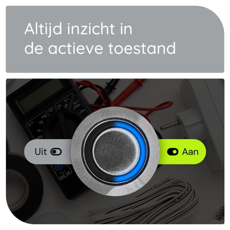 Dankzij de ingebouwde blauwe LED-indicatie weet je altijd of de schakelaar aan of uit staat. Dit is niet alleen handig, maar geeft ook een moderne en professionele uitstraling aan je installatie.