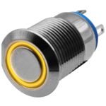 ProRide Metalen Drukschakelaar 12V ON-OFF – 12mm – Aan/uit schakelaar – Spatwaterdicht – 12V/24V – LED Indicatie Geel