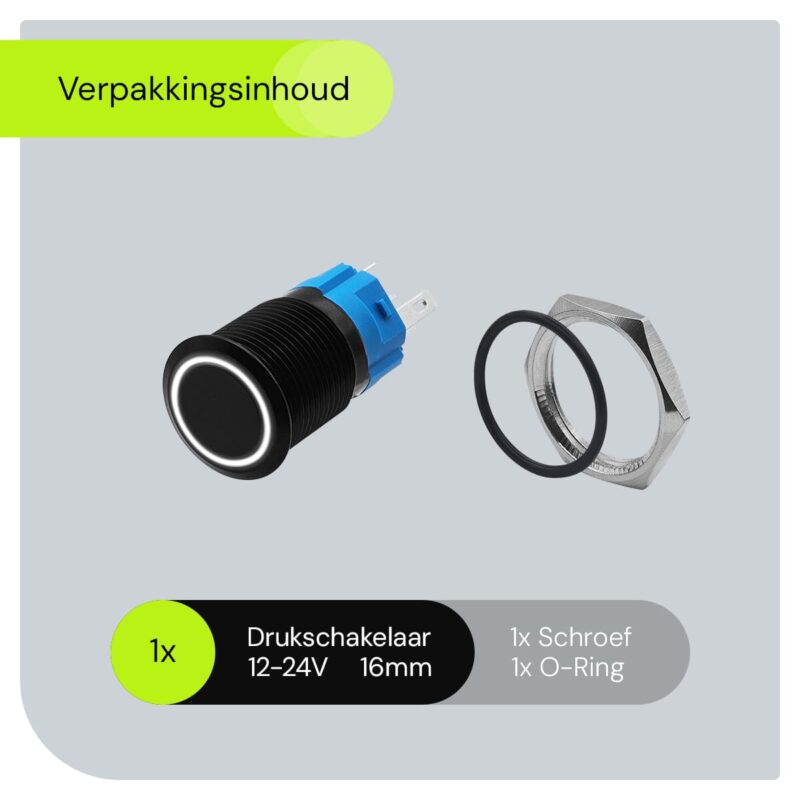 ProRide Metalen Drukschakelaar 12V ON-OFF – 16mm – Aan/uit schakelaar – Spatwaterdicht – 12V/24V – LED Indicatie Wit
