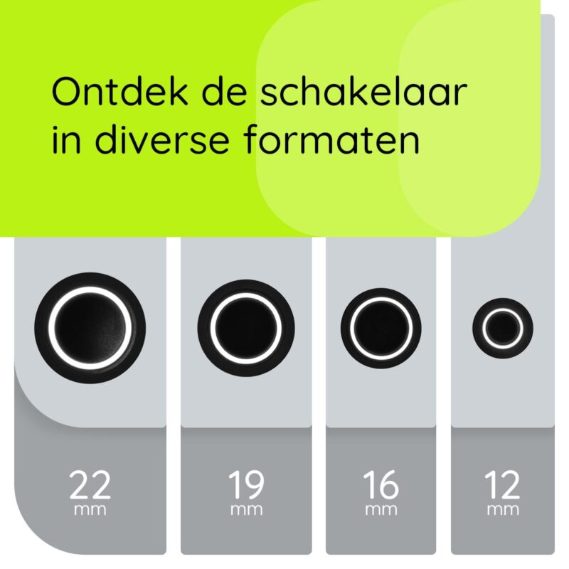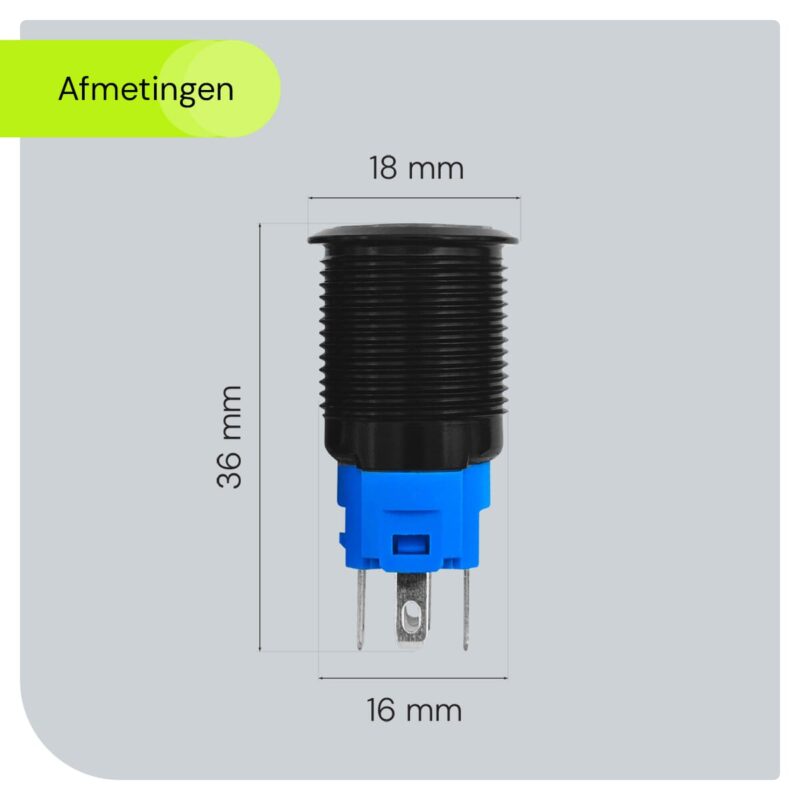 - Hoe groot is de schakelaar? De schakelaar heeft een diameter van 16mm.