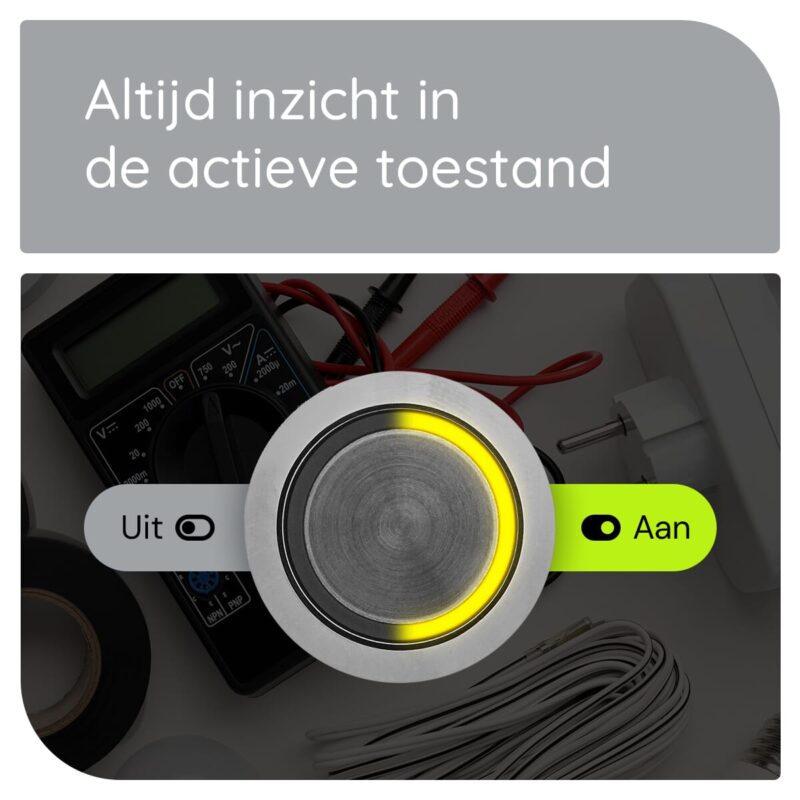 Dankzij de ingebouwde gele LED-indicatie weet je altijd of de schakelaar aan of uit staat. Dit is niet alleen handig, maar verhoogt ook de veiligheid, vooral in donkere omgevingen.