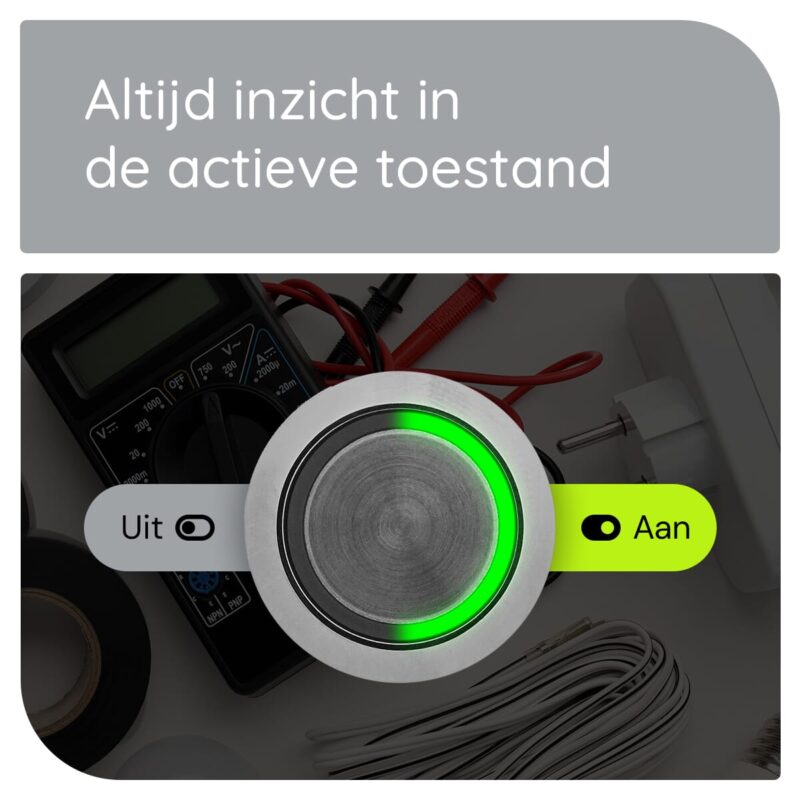 Dankzij de groene LED-indicatie weet je altijd of de schakelaar aan of uit staat. Dit is niet alleen handig, maar ook een extra veiligheidsmaatregel. De LED is helder en goed zichtbaar, zelfs in slecht verlichte omgevingen.