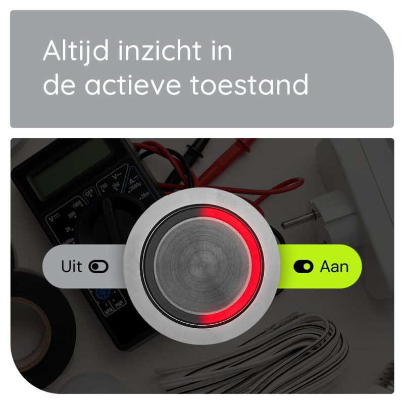 Dankzij de ingebouwde rode LED-indicatie weet je altijd of de schakelaar aan of uit staat. Dit biedt niet alleen extra veiligheid, maar ook een moderne en professionele uitstraling.