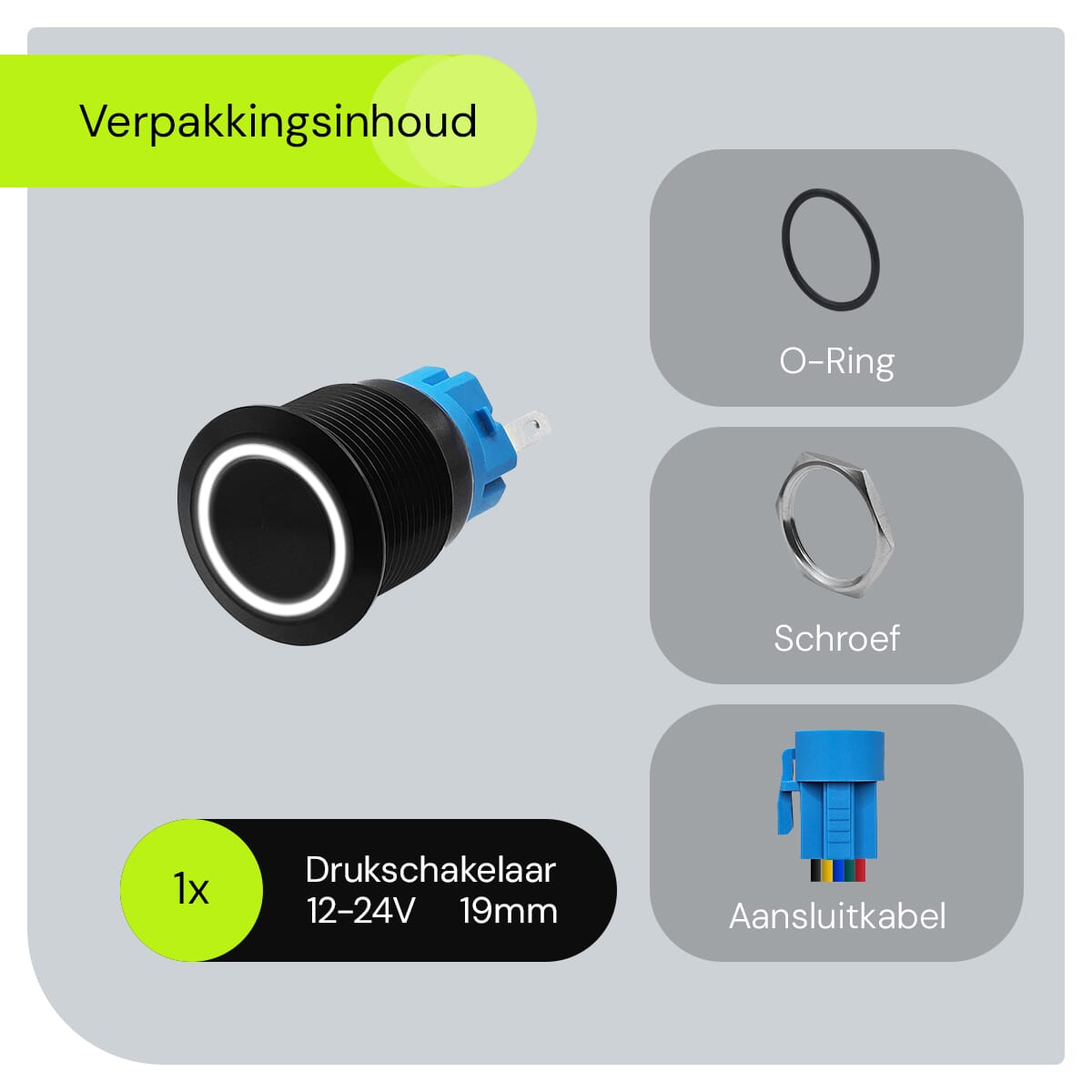 - Wat is de diameter van de schakelaar? De schakelaar heeft een diameter van 19mm, wat hem geschikt maakt voor diverse toepassingen.