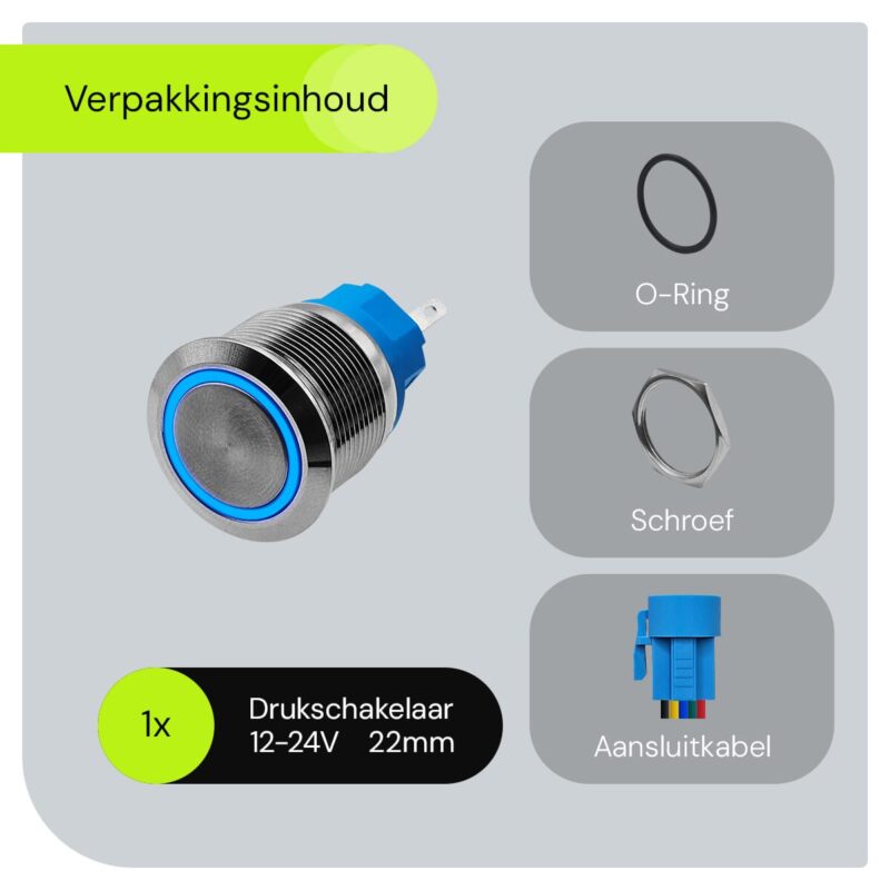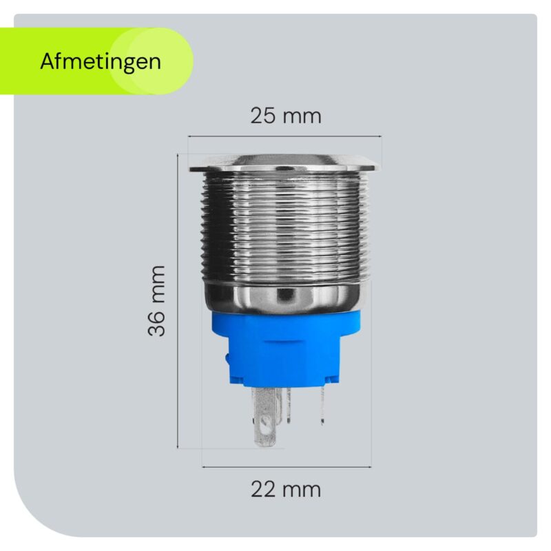 - Wat is de diameter van de schakelaar? De schakelaar heeft een diameter van 22mm, wat een standaardmaat is voor veel toepassingen.