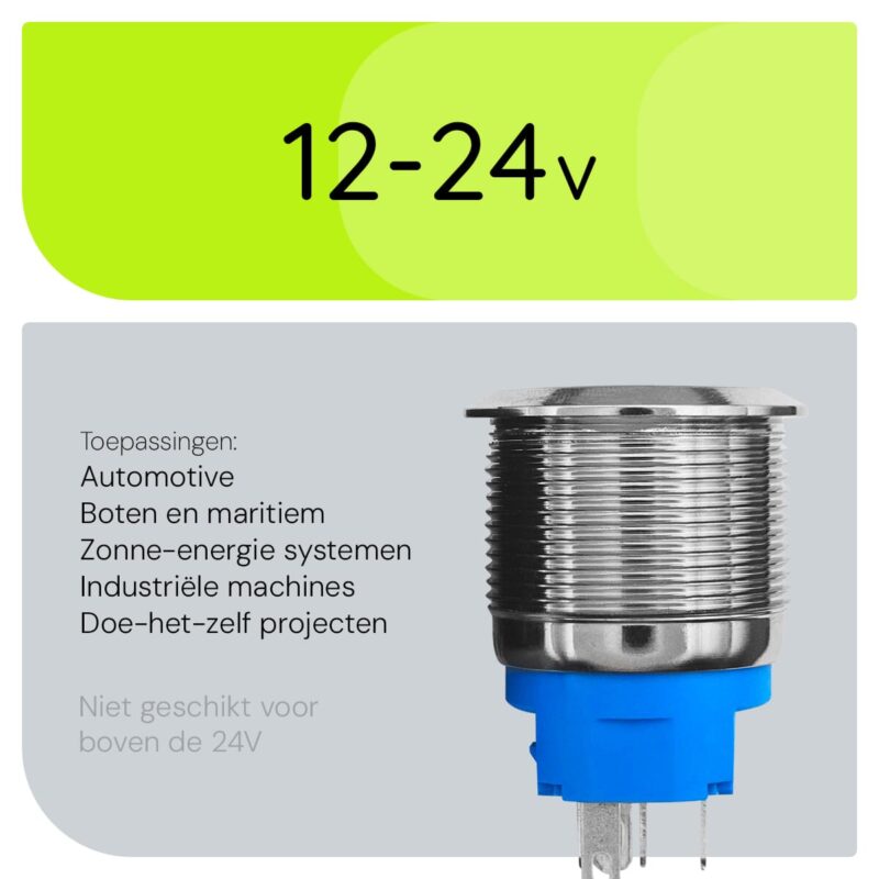 Deze schakelaar is geschikt voor zowel 12V als 24V systemen, waardoor hij ideaal is voor een breed scala aan toepassingen. Of je nu werkt aan een auto, motorfiets, boot of een ander elektrisch project, de ProRide Metalen Drukschakelaar biedt de flexibiliteit die je nodig hebt.