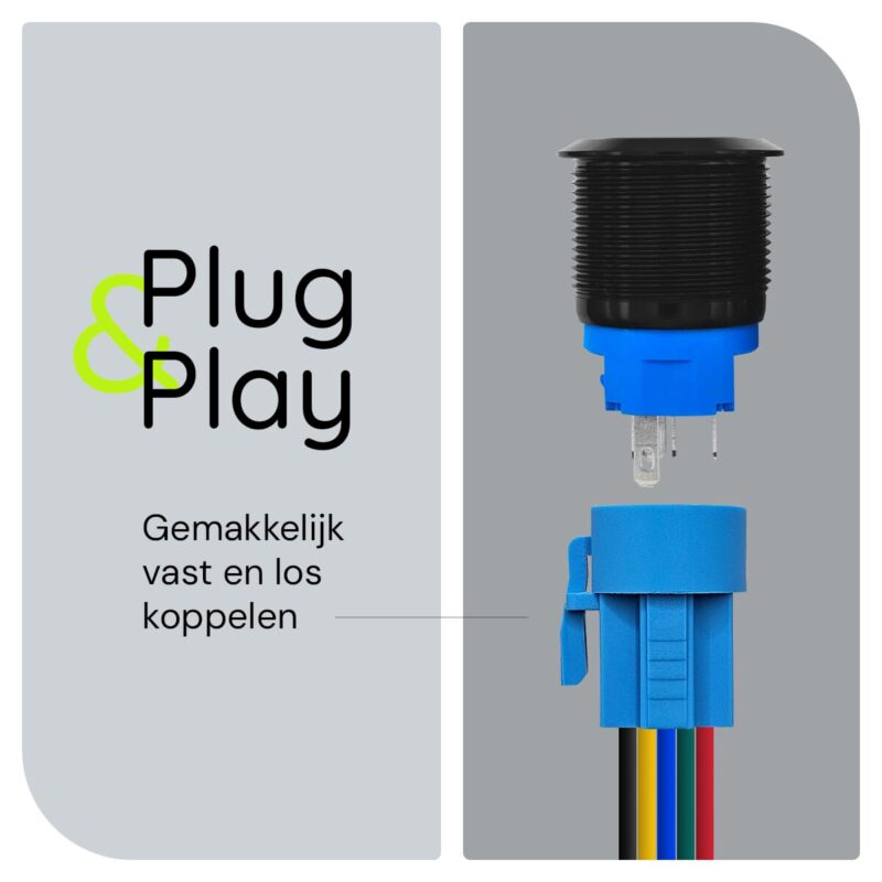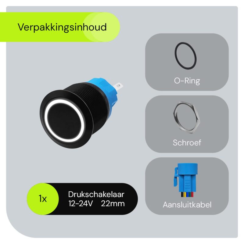 ProRide Metalen Drukschakelaar 12V ON-OFF – 22mm – Aan/uit schakelaar met Aansluitkabel – Spatwaterdicht – 12V/24V – LED Indicatie Wit