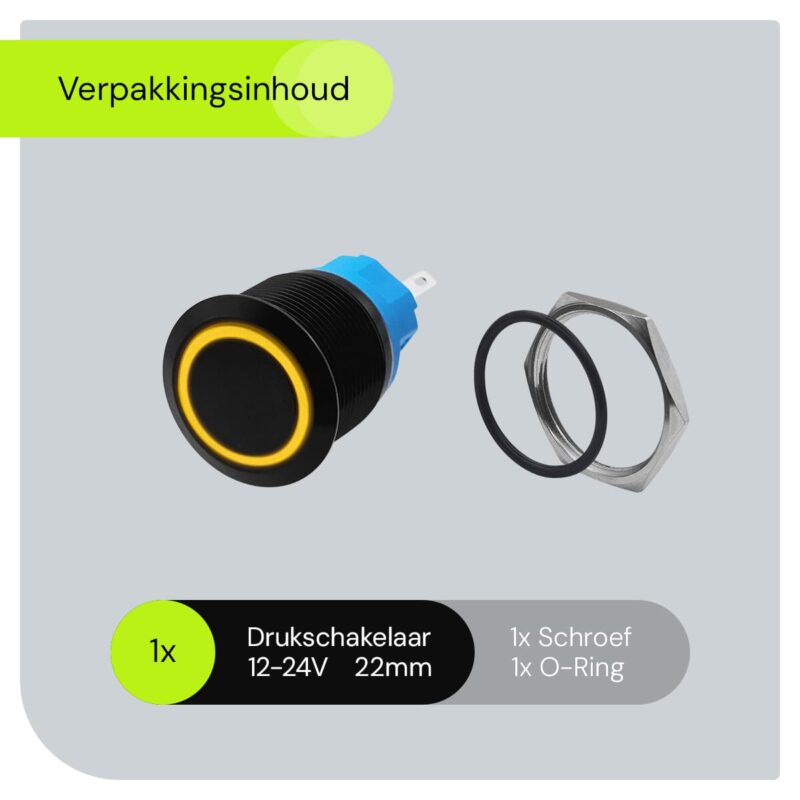 ProRide Metalen Drukschakelaar 12V ON-OFF – 22mm – Aan/uit schakelaar – Spatwaterdicht – 12V/24V – LED Indicatie Geel