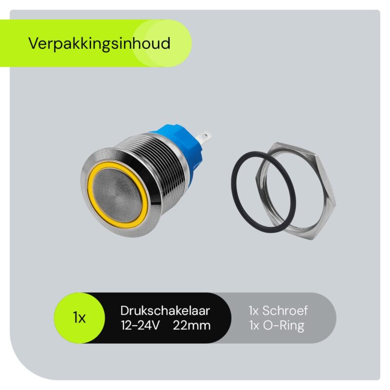 ProRide Metalen Drukschakelaar 12V ON-OFF – 22mm – Aan/uit schakelaar – Spatwaterdicht – 12V/24V – LED Indicatie Geel