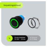 - Hoe groot is de schakelaar? De schakelaar heeft een diameter van 22mm, wat hem geschikt maakt voor diverse toepassingen.
