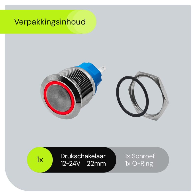 ProRide Metalen Drukschakelaar 12V ON-OFF – 22mm – Aan/uit schakelaar – Spatwaterdicht – 12V/24V – LED Indicatie Rood
