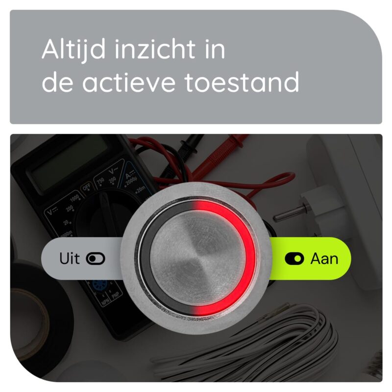 Dankzij de ingebouwde rode LED-indicator weet je altijd of de schakelaar aan of uit staat. Dit is niet alleen handig, maar verhoogt ook de veiligheid, vooral in donkere omgevingen.