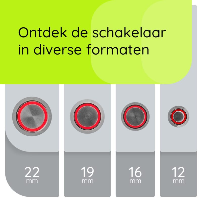 - Hoe groot is de schakelaar? De schakelaar heeft een diameter van 22mm, wat hem compact en gemakkelijk te installeren maakt.