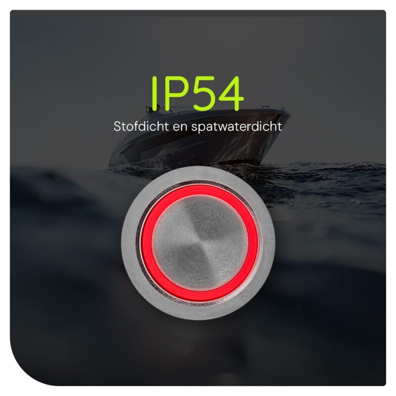 De ProRide Metalen Drukschakelaar is spatwaterdicht, wat betekent dat je je geen zorgen hoeft te maken over vocht of water dat de schakelaar beschadigt. Dit maakt het een uitstekende keuze voor toepassingen in auto’s, boten en andere vochtige omgevingen.