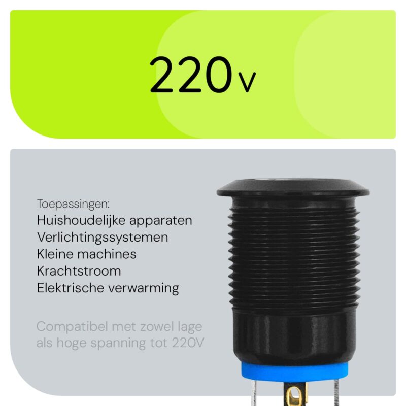 ProRide Metalen Drukschakelaar 220V ON-OFF – 12mm – Aan/uit schakelaar met Aansluitkabel – Spatwaterdicht – LED Indicatie Wit