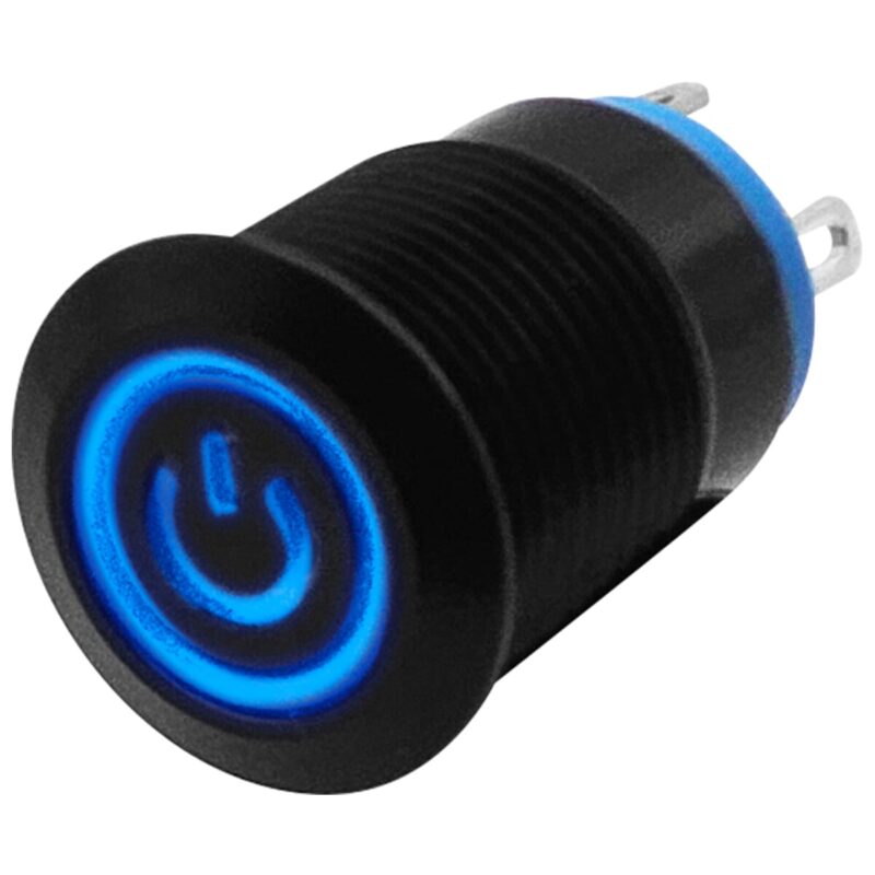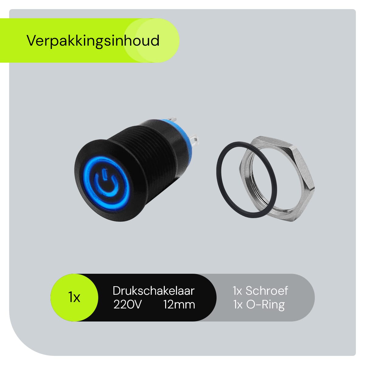 ProRide Metalen Drukschakelaar 220V ON-OFF – 12mm – Aan/uit schakelaar – Spatwaterdicht – LED Indicatie Blauw