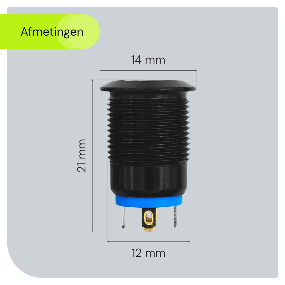 - Hoe groot is de schakelaar? De schakelaar heeft een diameter van 12mm.