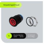 De ProRide Metalen Drukschakelaar werkt eenvoudig: druk op de knop om de stroom in te schakelen en druk nogmaals om deze uit te schakelen. De rode LED-indicator licht op wanneer de schakelaar aan staat, zodat je altijd weet wat de status is. De schakelaar is ontworpen voor een spanning van 220V en is eenvoudig te installeren dankzij de 12mm montagegrootte.