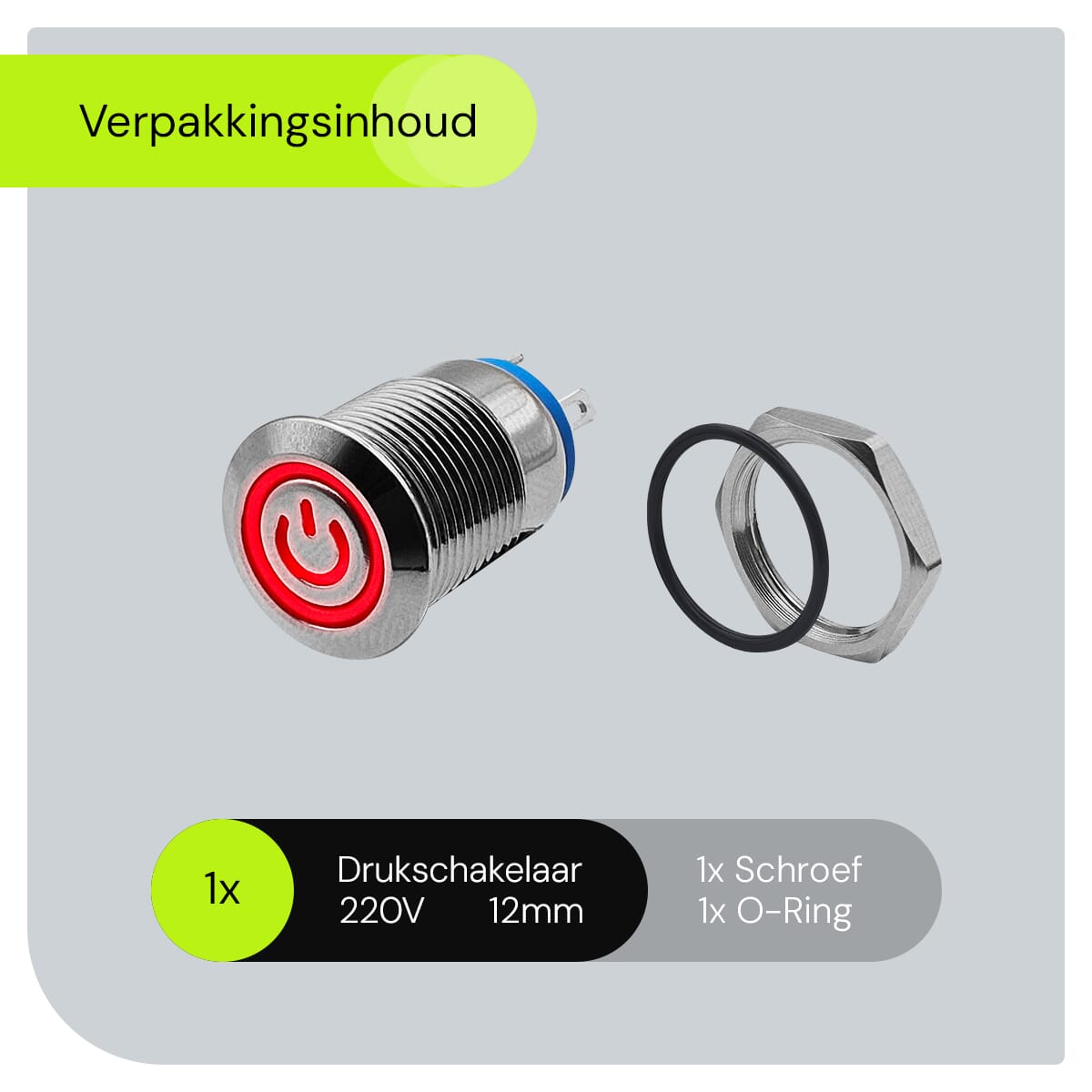 - Hoe installeer ik de schakelaar? De schakelaar heeft een 12mm montagegrootte en kan eenvoudig worden geïnstalleerd in een geschikt paneel of oppervlak.