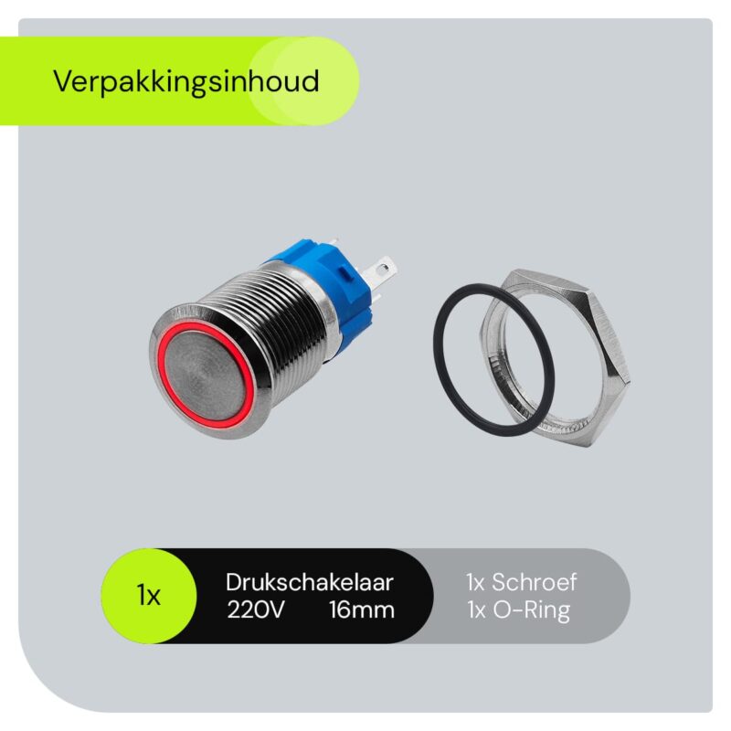 ProRide Metalen Drukschakelaar 220V ON-OFF – 16mm – Aan/uit schakelaar – Spatwaterdicht – LED Indicatie Rood