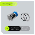 ProRide Metalen Drukschakelaar 220V ON-OFF – 16mm – Aan/uit schakelaar – Spatwaterdicht – LED Indicatie Wit