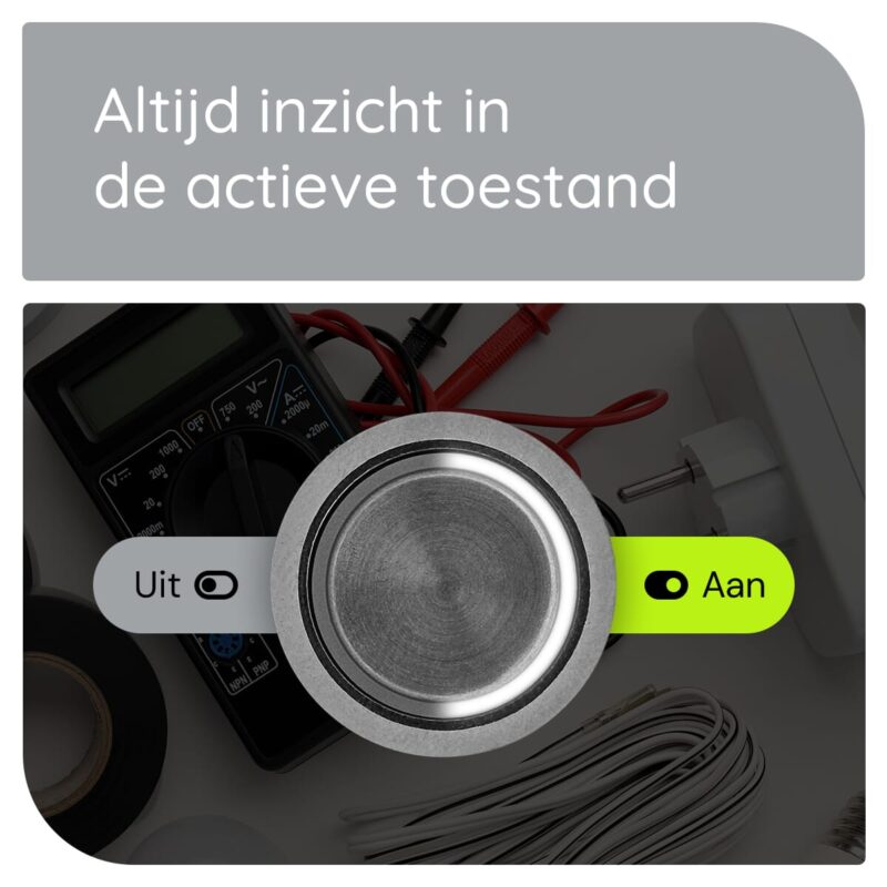 Dankzij de ingebouwde LED-indicatie weet je altijd of de schakelaar aan of uit staat. Dit is niet alleen handig, maar verhoogt ook de veiligheid door te voorkomen dat je per ongeluk apparaten aan laat staan.