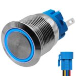ProRide Metalen Drukschakelaar 220V ON-OFF – 19mm – Aan/uit schakelaar met Aansluitkabel – Spatwaterdicht – LED Indicatie Blauw