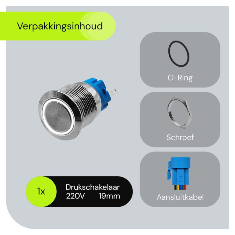 - Wat is de diameter van de schakelaar? De schakelaar heeft een diameter van 19mm.