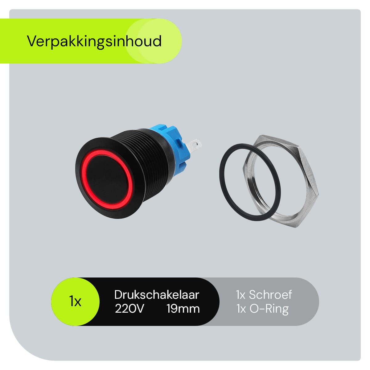 - Hoe groot is de schakelaar? De schakelaar heeft een diameter van 19mm, wat hem compact en gemakkelijk te installeren maakt.