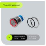 ProRide Metalen Drukschakelaar 220V ON-OFF – 19mm – Aan/uit schakelaar – Spatwaterdicht – LED Indicatie Rood
