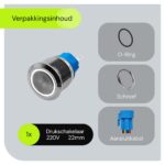 ProRide Metalen Drukschakelaar 220V ON-OFF – 22mm – Aan/uit schakelaar met Aansluitkabel – Spatwaterdicht – LED Indicatie Wit