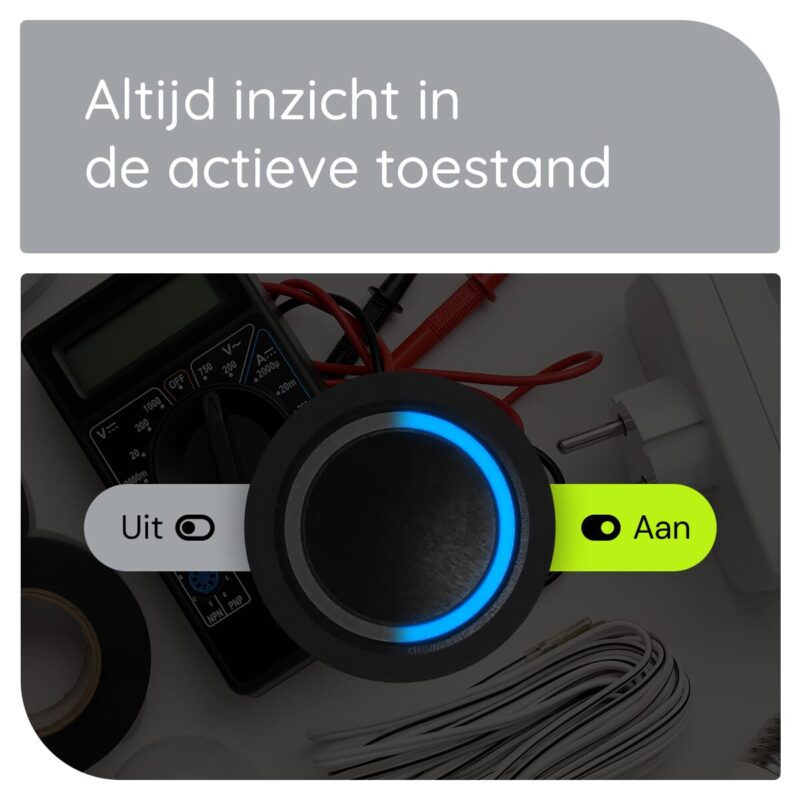 De ingebouwde blauwe LED-indicator biedt een duidelijke visuele weergave van de schakelstatus. Dit is bijzonder handig in donkere ruimtes of wanneer je snel wilt zien of de schakelaar aan of uit staat.
