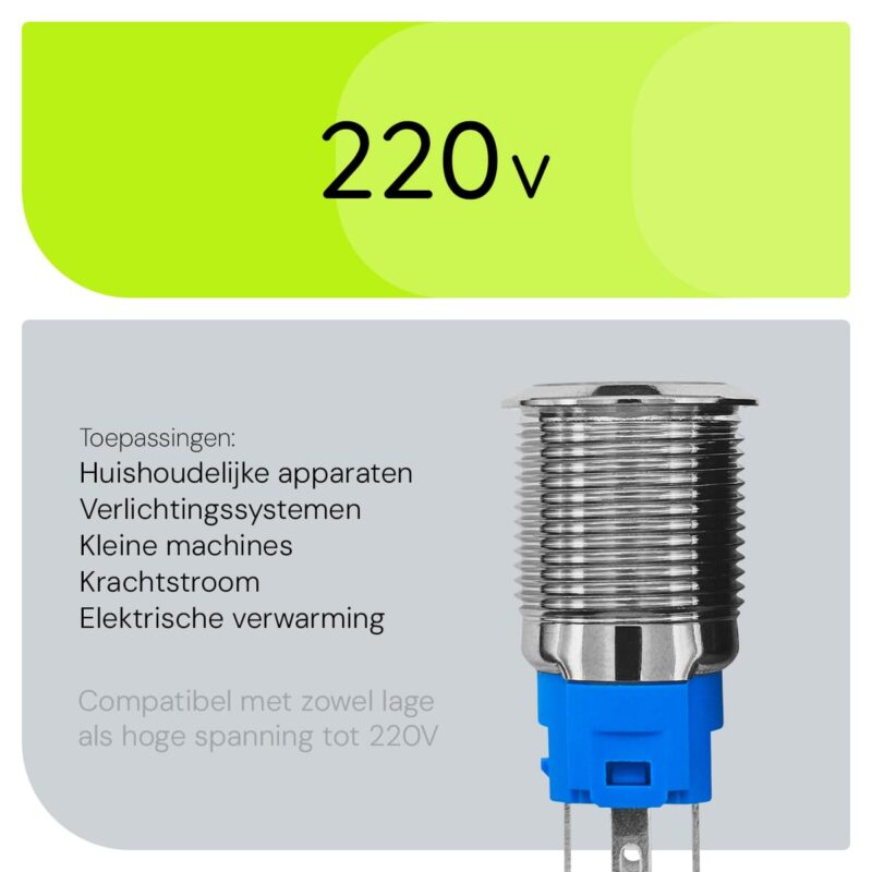 De ProRide® Metalen Drukschakelaar 220V wordt gewaardeerd om zijn hoge mate van betrouwbaarheid en gebruiksgemak. Deze schakelaar is speciaal ontwikkeld voor veilig gebruik in 220V systemen en wordt vaak gekozen voor zijn duurzaamheid en moderne uitstraling. De LED-verlichting voegt een extra laag van gemak toe door de status altijd duidelijk weer te geven.