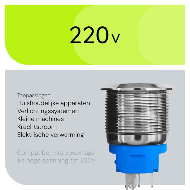 De ProRide® Metalen Drukschakelaar 220V wordt gewaardeerd om zijn hoge mate van betrouwbaarheid en gebruiksgemak. Deze schakelaar is speciaal ontwikkeld voor veilig gebruik in 220V systemen en wordt vaak gekozen voor zijn duurzaamheid en moderne uitstraling. De LED-verlichting voegt een extra laag van gemak toe door de status altijd duidelijk weer te geven.