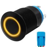 ProRide Metalen Pulsschakelaar 12V OFF-(ON) – 12mm – Momentschakelaar met Aansluitkabel – Spatwaterdicht – 12V/24V – LED Indicatie Geel