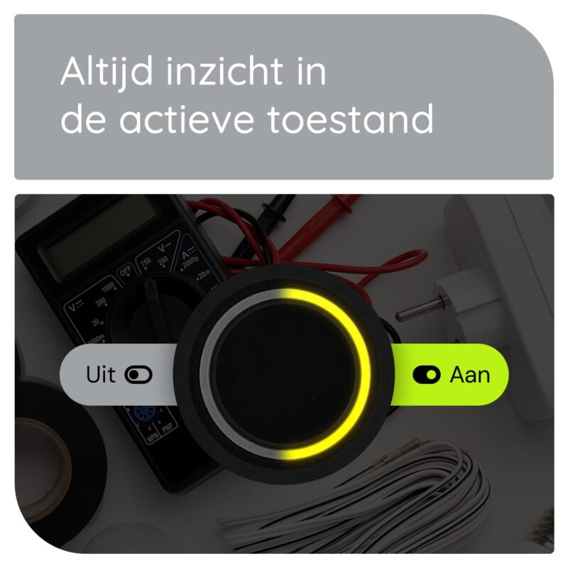 Dankzij de heldere gele LED indicatie weet je altijd of de schakelaar actief is. Dit is niet alleen handig, maar verhoogt ook de veiligheid, vooral in donkere omgevingen.