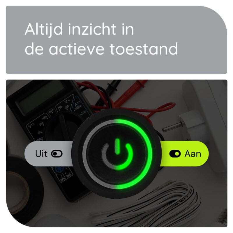 De groene LED indicatie zorgt voor een duidelijke visuele feedback, zodat je altijd weet wanneer de schakelaar is ingeschakeld. Dit is vooral handig in donkere omgevingen of wanneer je snel moet kunnen zien of de schakelaar actief is.