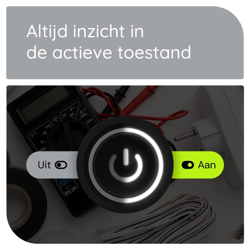 Dankzij de ingebouwde witte LED-indicatie weet je altijd wanneer de schakelaar actief is. Dit biedt niet alleen een moderne uitstraling, maar ook extra veiligheid en gemak, vooral in donkere omgevingen.