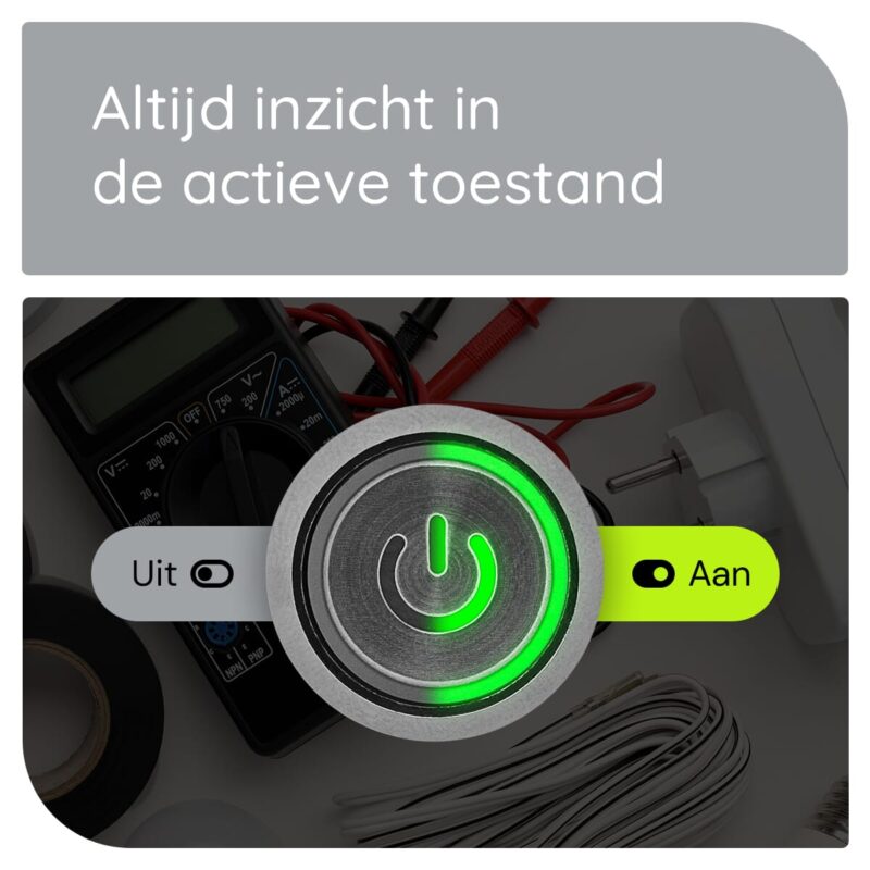 Dankzij de ingebouwde groene LED-indicatie weet je altijd wanneer de schakelaar actief is. Dit biedt niet alleen gemak, maar ook extra veiligheid, vooral in donkere omgevingen. De LED is helder en goed zichtbaar, zodat je nooit twijfelt over de status van je schakelaar.