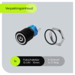 • Hoe groot is de schakelaar? De schakelaar heeft een diameter van 16mm, wat hem compact en gemakkelijk te installeren maakt.
