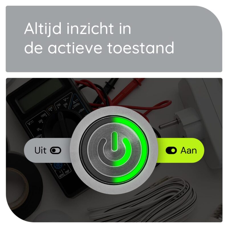 Dankzij de ingebouwde groene LED indicatie weet je altijd of de schakelaar actief is. Dit biedt niet alleen extra gemak, maar ook veiligheid, vooral in donkere omstandigheden.