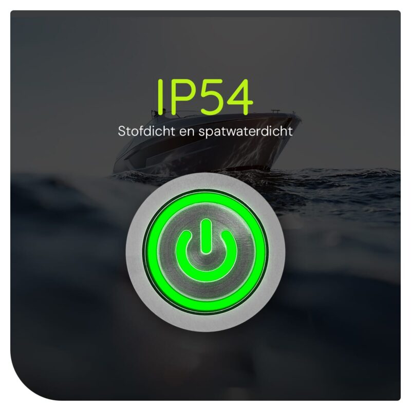 De ProRide Metalen Pulsschakelaar is spatwaterdicht, wat betekent dat je je geen zorgen hoeft te maken over vocht of regen. Dit maakt de schakelaar perfect voor gebruik in voertuigen, boten of andere vochtige omgevingen.