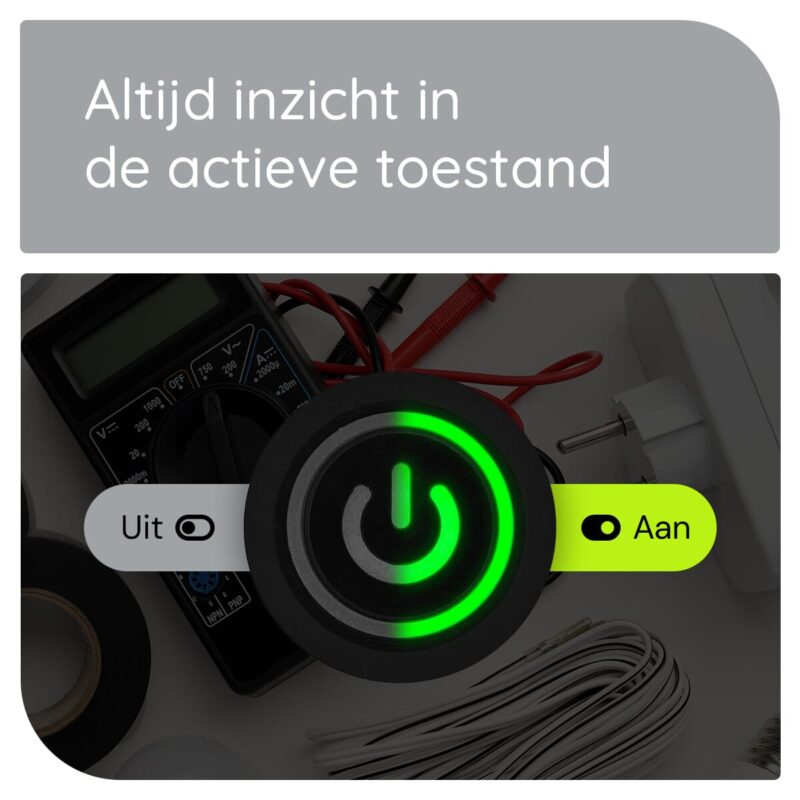 Dankzij de ingebouwde groene LED indicatie weet je altijd of de schakelaar actief is. Dit biedt niet alleen extra gemak, maar ook veiligheid, vooral in donkere omstandigheden.