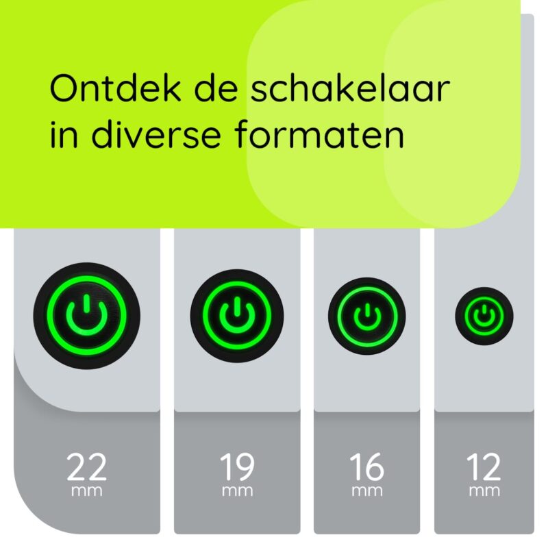 - Hoe groot is de schakelaar? De schakelaar heeft een diameter van 19mm.