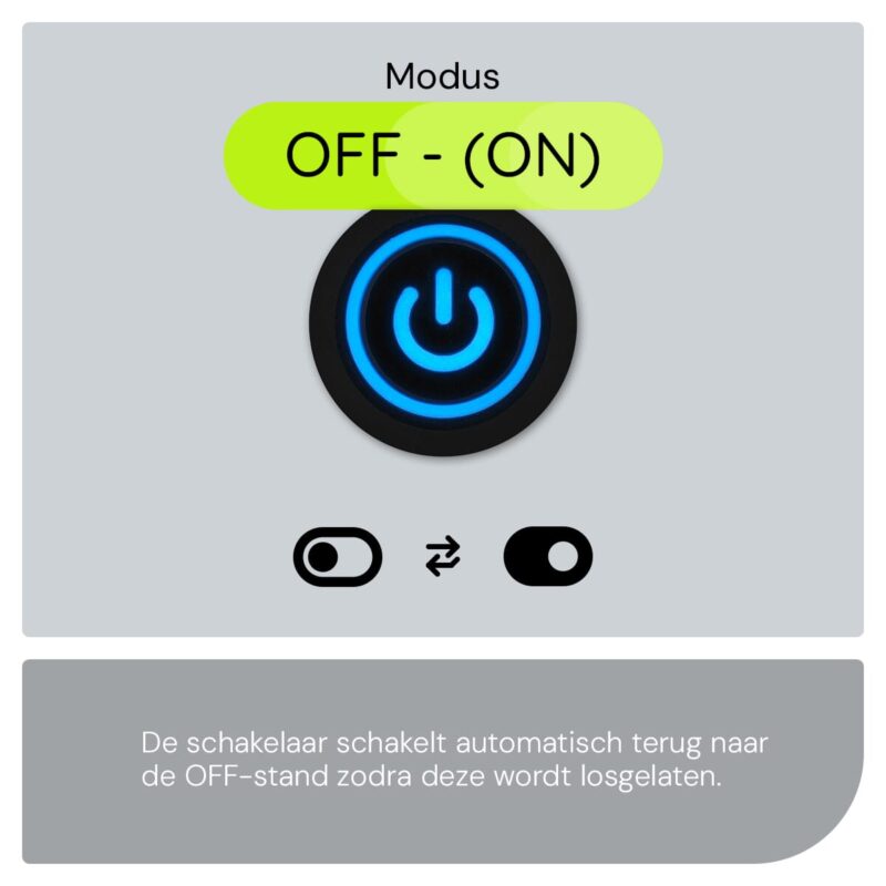 De ProRide Metalen Pulsschakelaar werkt op een eenvoudige maar effectieve manier. Wanneer je de knop indrukt, maakt de schakelaar tijdelijk contact (ON) en keert daarna automatisch terug naar de uit-stand (OFF). Dit maakt het ideaal voor toepassingen waarbij je een tijdelijke verbinding nodig hebt, zoals het activeren van een claxon of verlichting.