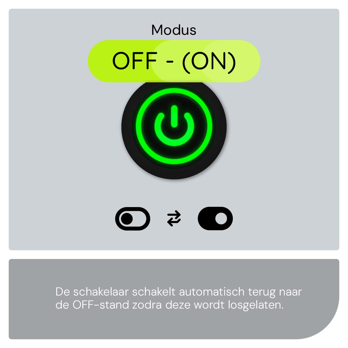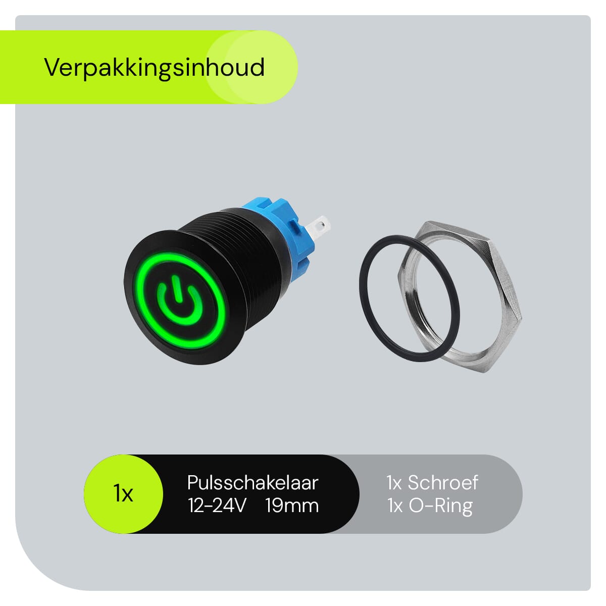 ProRide Metalen Pulsschakelaar 12V OFF-(ON) – 19mm – Momentschakelaar – Spatwaterdicht – 12V/24V – LED Indicatie Groen