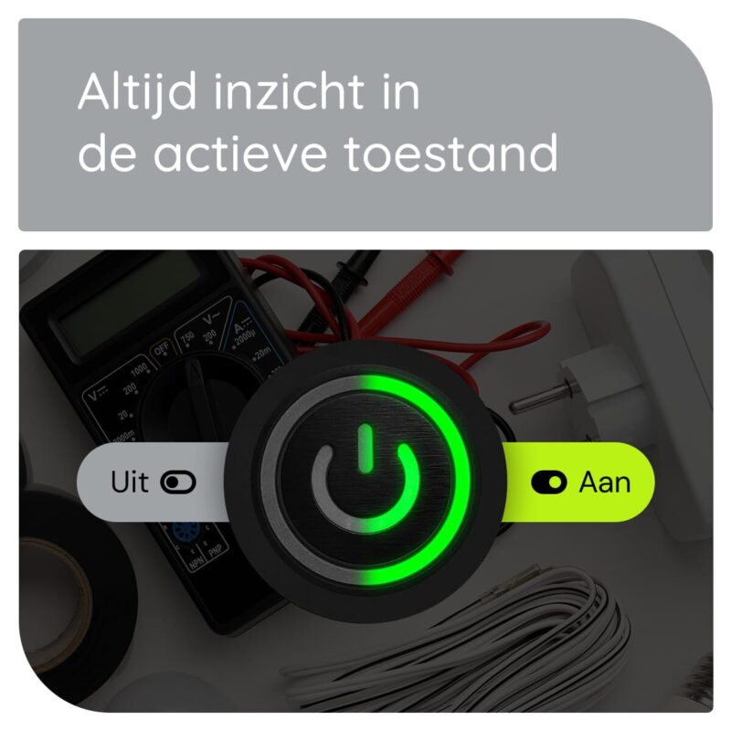 Dankzij de groene LED indicatie weet je altijd wanneer de schakelaar actief is. Dit biedt niet alleen een moderne uitstraling, maar ook extra veiligheid en gebruiksgemak, vooral in donkere omgevingen.