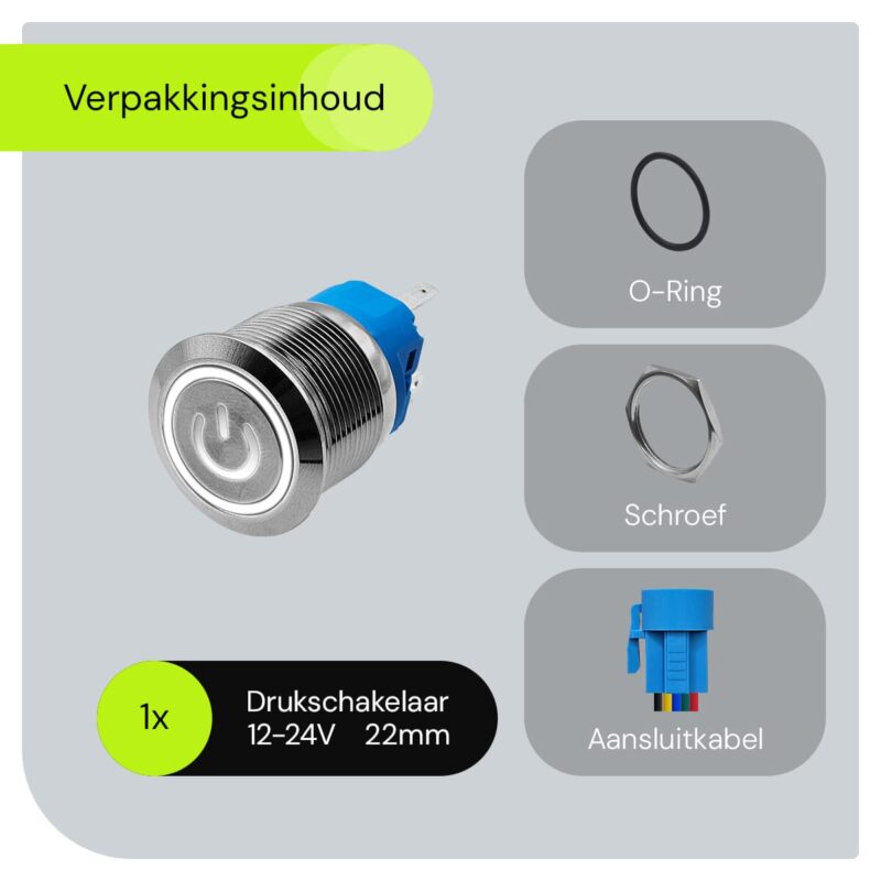 - Wat is de diameter van de schakelaar? De schakelaar heeft een diameter van 22mm.