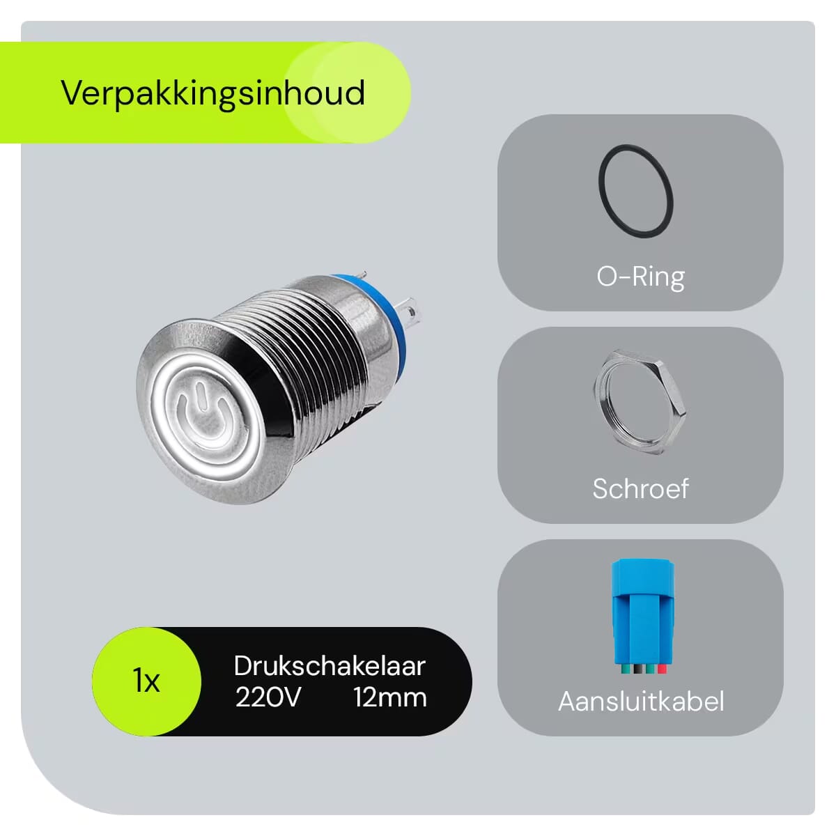 - Wat is de diameter van de schakelaar? De schakelaar heeft een diameter van 12mm, wat hem geschikt maakt voor diverse toepassingen.