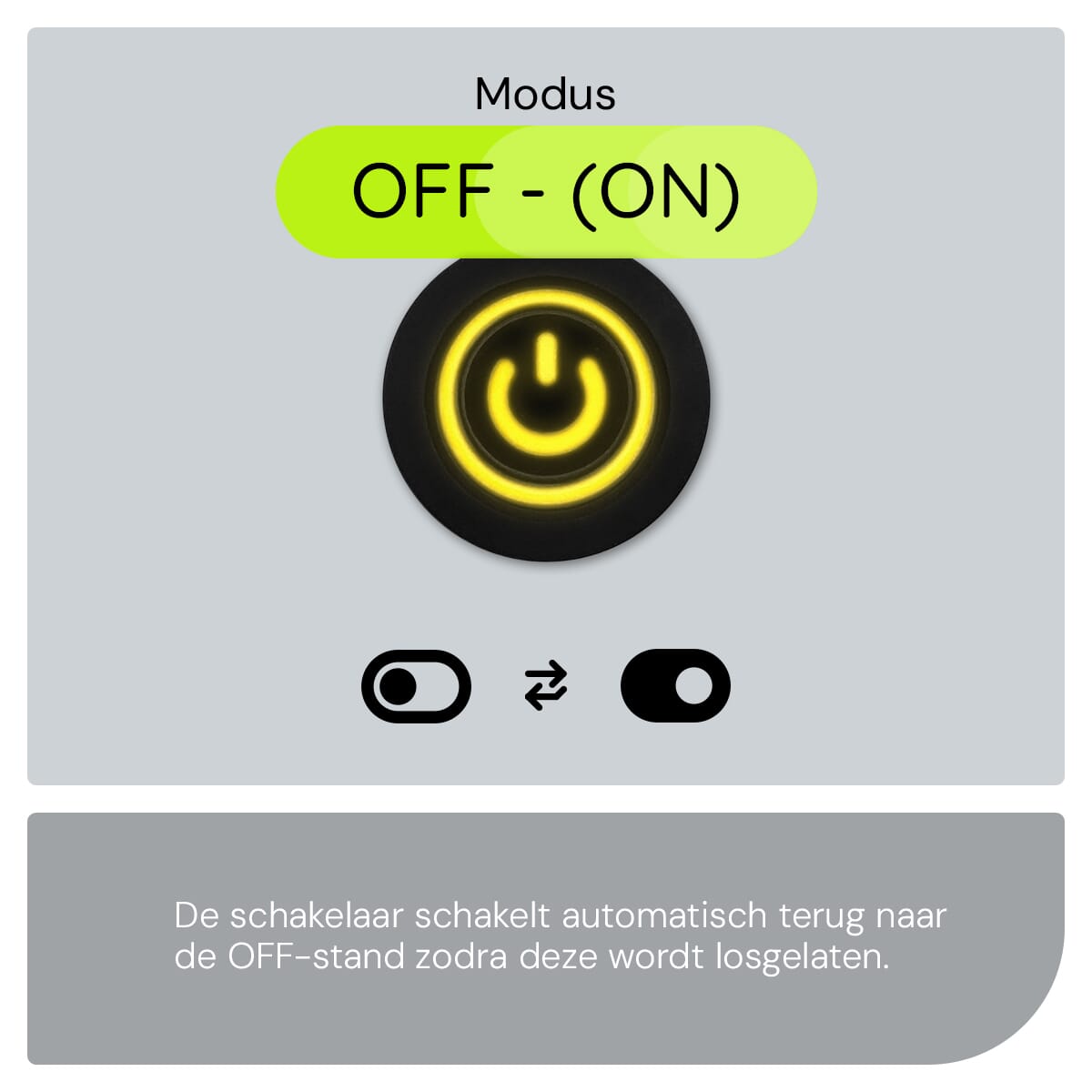 De ProRide Metalen Pulsschakelaar werkt op een eenvoudige maar effectieve manier. Wanneer je de knop indrukt, maakt de schakelaar tijdelijk contact (ON) en keert daarna automatisch terug naar de uit-stand (OFF). Dit maakt hem ideaal voor toepassingen waarbij een korte puls nodig is, zoals het activeren van een bel of een resetknop.